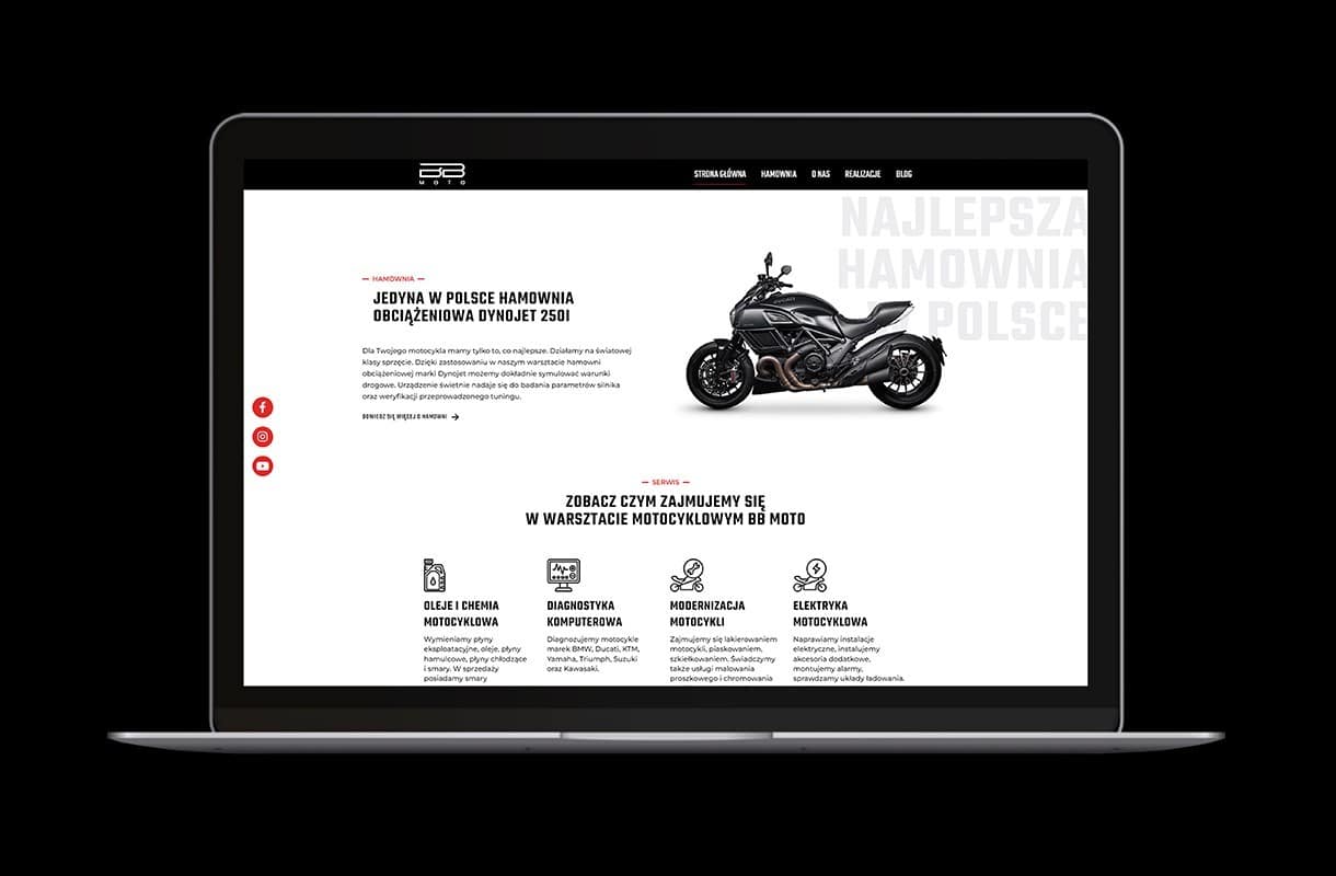 The new motorcycle workshop website showcases two branches of the business – repairs and a high-performance motorcycle dynamometer. The homepage contains all the information, arranged in an intuitive way for both mobile and desktop versions. The “dynamometer” tab encourages the user to book a motorcycle test, and the comprehensive descriptions increase trust in the workshop. We equipped the side menu with social media buttons. Blog on the website allows the client to publish posts on his own using an easy-to-use CMS system.