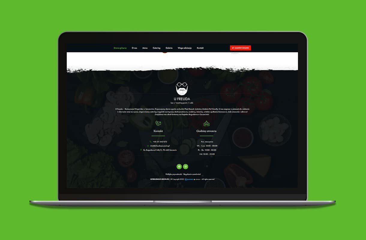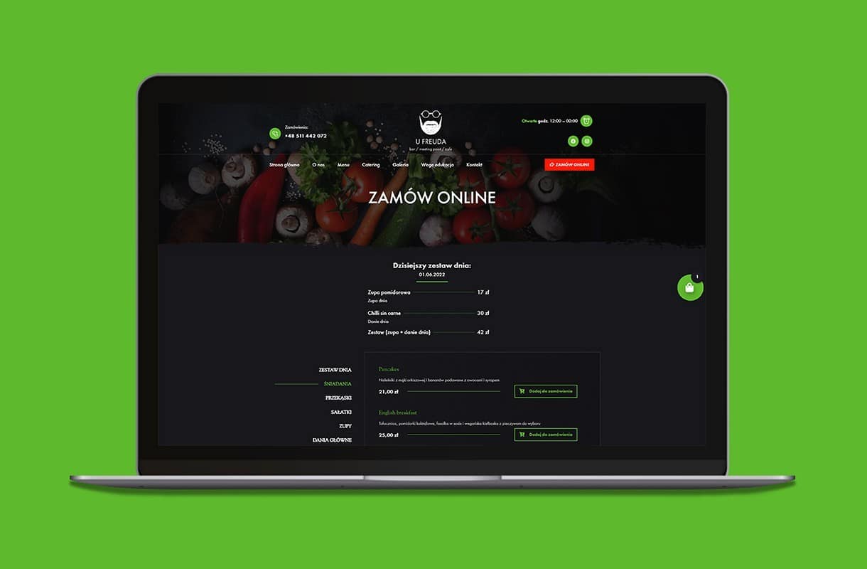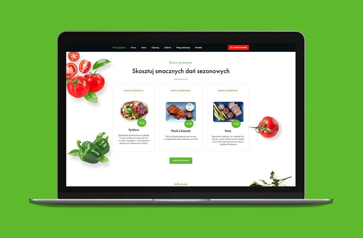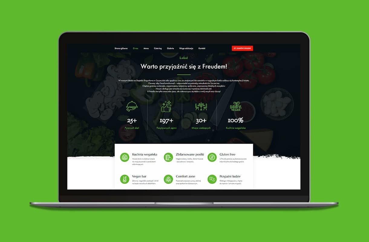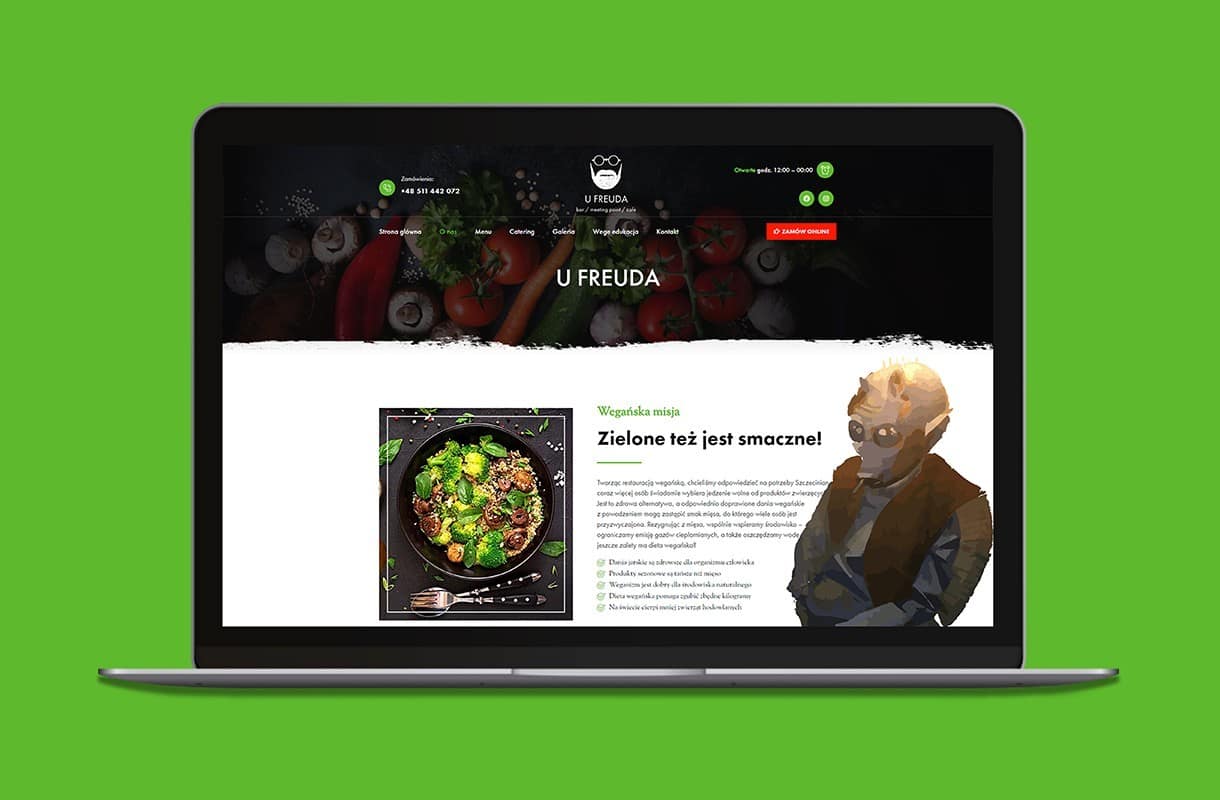When creating the website for this vegan restaurant, we decided to play with contrasts. White and black combined with colourful accents fit into the style of the restaurant. Numerous CTA buttons encourage to interact with the website, and the “Vege Edukacja” tab allows visitors to learn more about the vegan diet. The mobile version of the website works fast and invites the users to place orders online, as well as to book a table via the form. The menu has been enriched with original photos – so that one can’t resist tasting the proposed delicacies!
