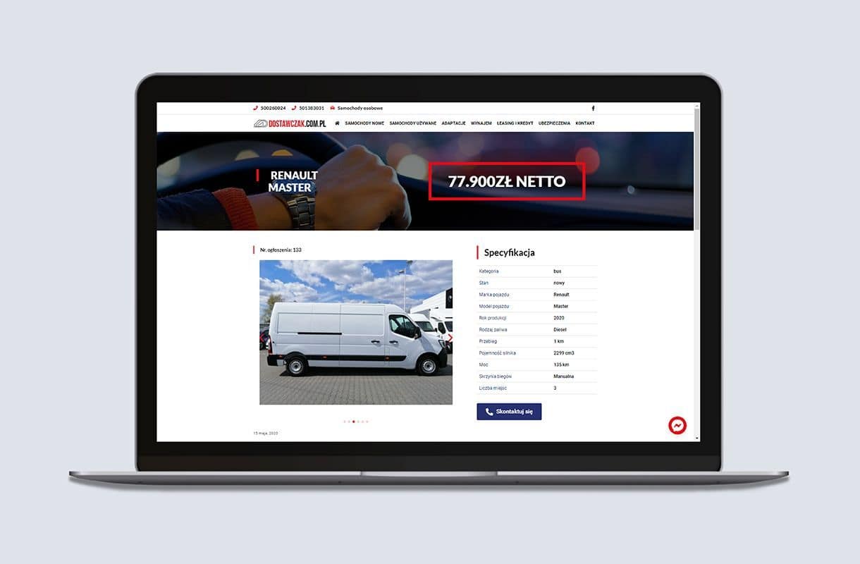 Zastosowane zostały rozbudowane moduły ofertowe dla samochodów i galerie. Pomimo swojej rozwiniętej struktury spełnia wszelkie potrzeby użytkowników. Strona jest w pełni dostosowana pod urządzenia mobilne.
