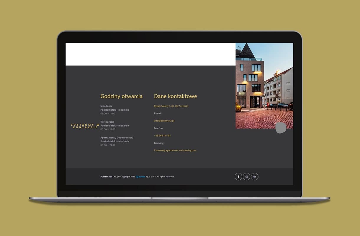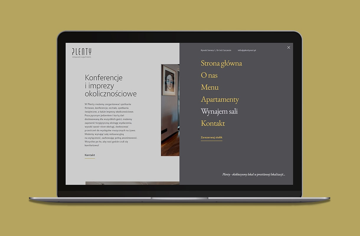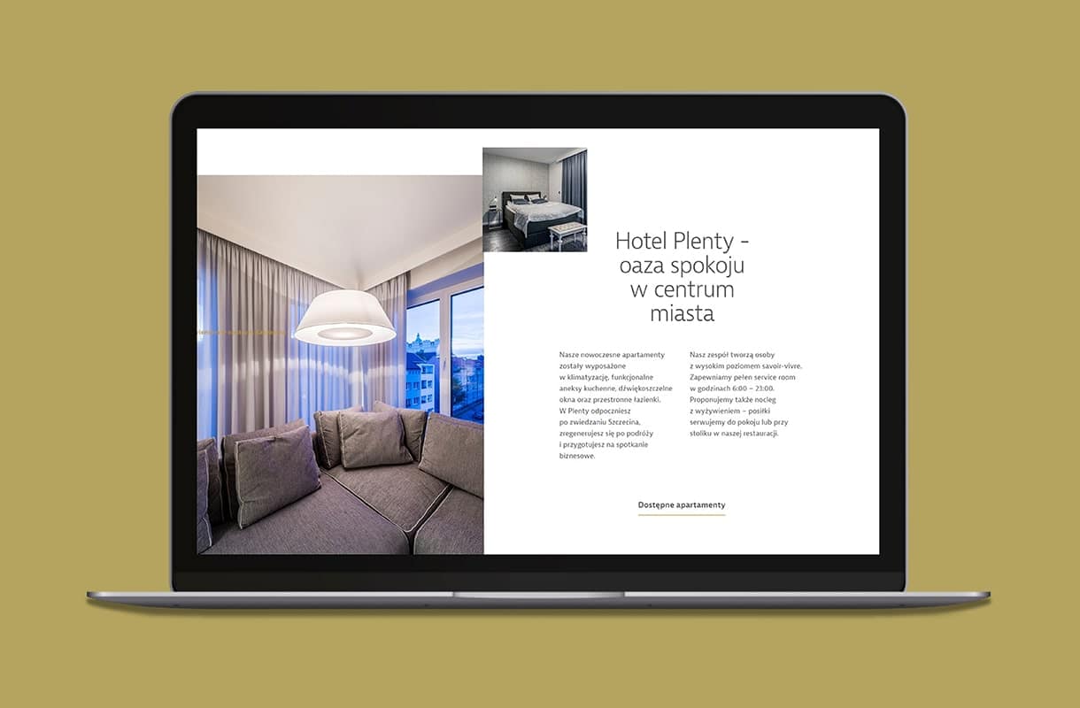 Realizując projekt dla Plenty – kameralnej restauracji i apartamentów w Szczecinie, skupiliśmy się na wyeksponowaniu unikalnego charakteru lokalu. Strona, którą stworzyliśmy, kusi wyszukanym designem, prezentuje smakowite propozycje kuchni oraz eleganckie apartamenty. Korzystając z zaawansowanych technik SEO, skierowaliśmy uwagę na lokalne aspekty, umożliwiając łatwiejsze dotarcie do potencjalnych klientów. Portfolio naszej agencji reklamowej wzbogaciło się o stronę www dla restauracji, która idealnie łączy estetykę z efektywnością.