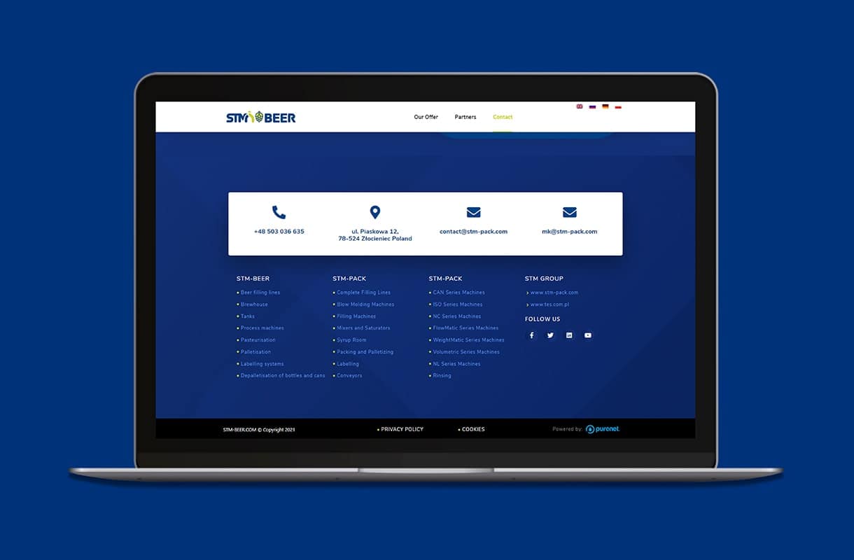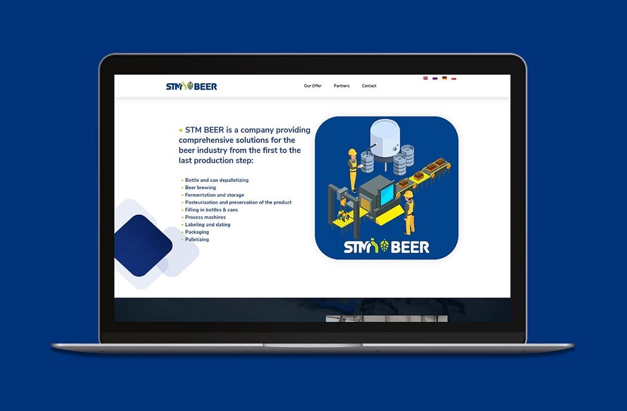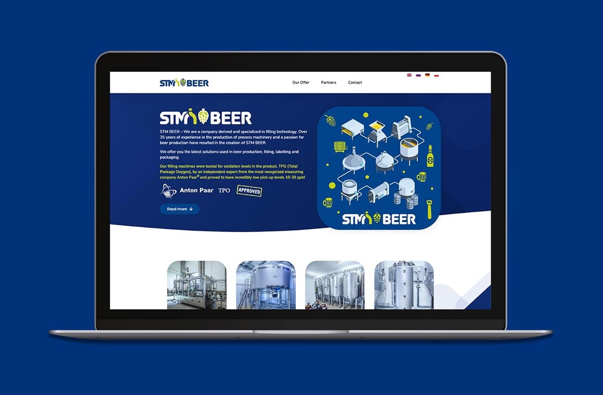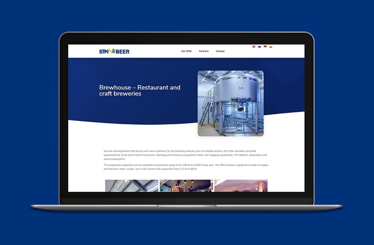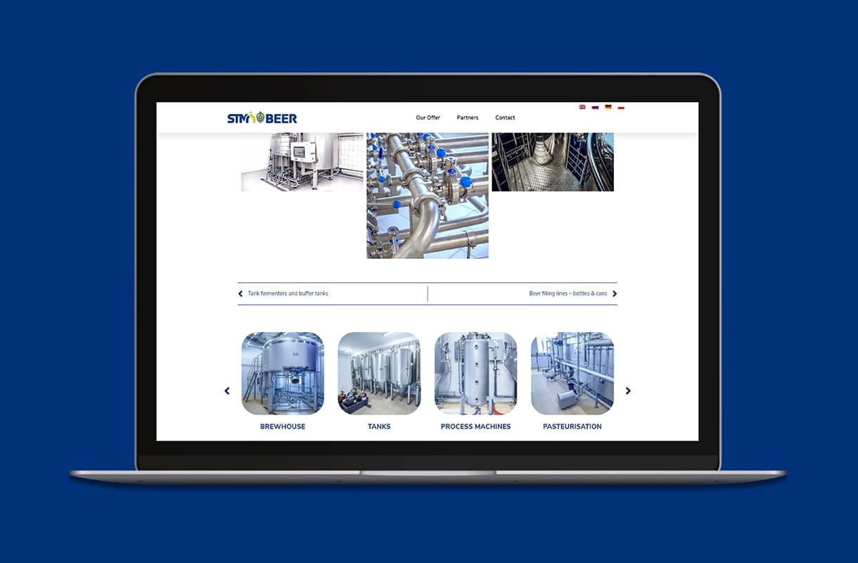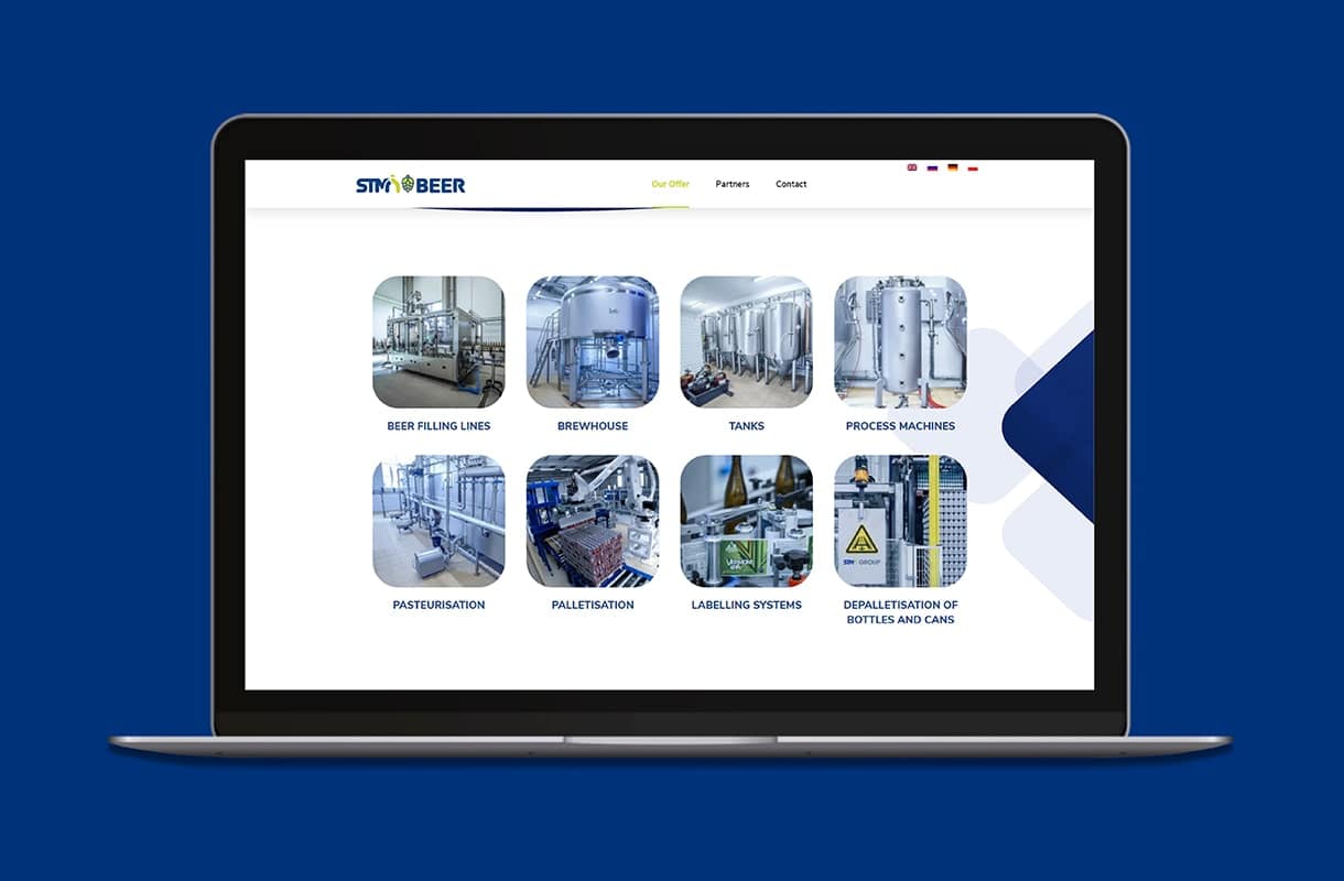 Strona główna z najważniejszymi informacjami. Odnośniki zdjęciowe kierujące odwiedzających do poszczególnych produktów. Wirtualny spacer pokazujący maszyny producenta podczas pracy. Wszystko to zawarte w nowoczesnej, pełni responsywnej stronie internetowej. Zainteresowani klienci znajdą tutaj wszystkie informacje, których poszukują, a przycisk “call to action” zachęci ich do skontaktowania się z firmą. Witryna dostępna w czterech wersjach językowych.