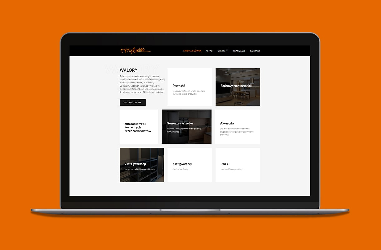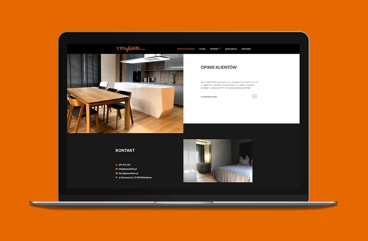 Galerie zdjęciowe w zakładkach – oferta i realizacje – wraz z opisami poszczególnych projektów to najważniejsza część witryny. Strona główna z wyszczególnionymi walorami oraz slider z opiniami klientów buduje opinię firmy jako eksperta. Layout strony został przygotowany tak, aby zachęcić odwiedzających do przeglądania galerii z efektownymi realizacjami. Mimo dużej ilości zdjęć strona wczytuje się szybko na każdym urządzeniu i jest bardzo intuicyjna.