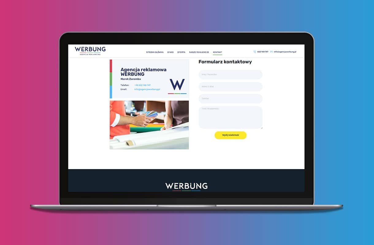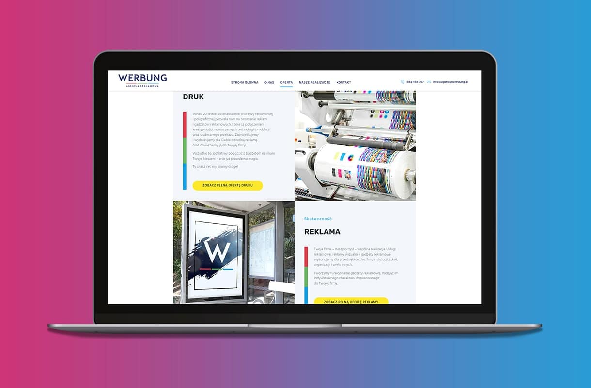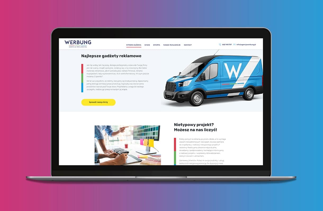 Przejrzysta strona internetowa z wieloma sliderami. Zakładka “oferta” z pełnym asortymentem w postaci zdjęć, a także galeria z realizacjami. Tak powinna wyglądać strona nowoczesnej agencji reklamowej. Postawiliśmy na białą oprawę i elementy w kolorystyce CMYK oraz RGB – bliskie firmie działającej w branży reklamowej. Witryna jest responsywna, a na urządzeniach mobilnych działa szybko i sprawnie. Teksty zostały napisane zgodnie z życzeniem klienta – z reklamowym zacięciem.